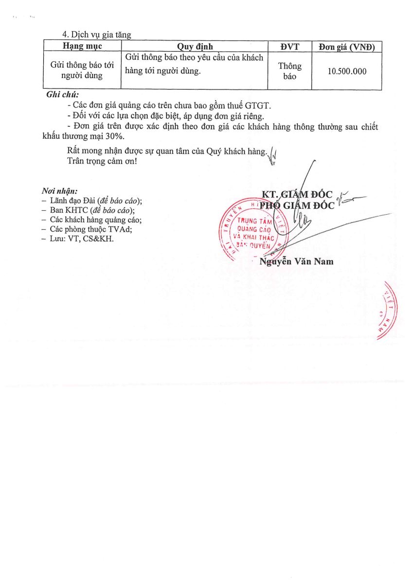 Thông báo TB380 v/v giá QC trên VTVGo cho SME