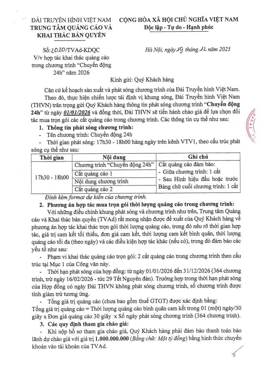 HT KT QC trong CT "Chuyển động 24h" năm 2026