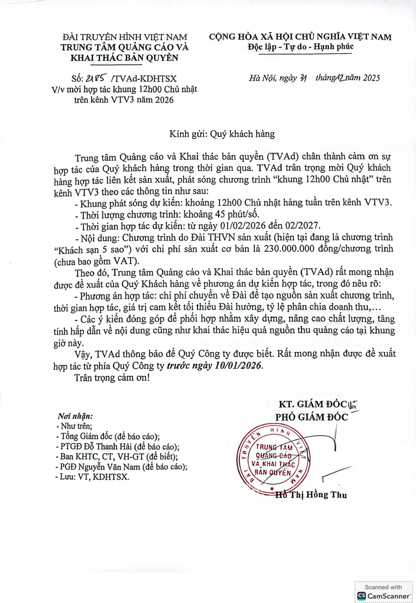 Mời hợp tác khung 12h00 Chủ nhật trên kênh VTV3 năm 2026 04:01 CH | 31.12.2025