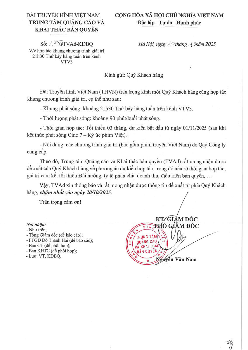 Hợp tác khung CT GT 21h30 T7 hàng tuần trên VTV3