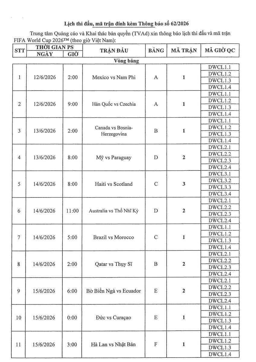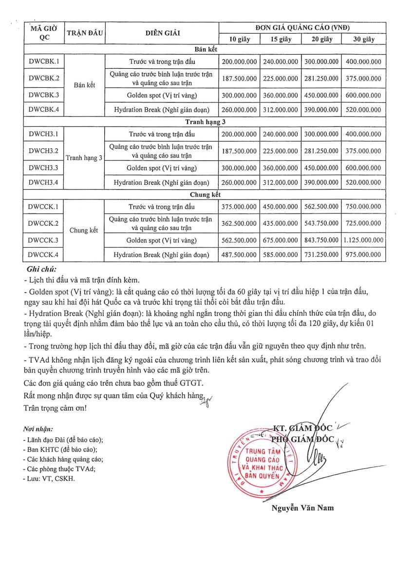 Thông báo TB63 v/v đơn giá quảng cáo các chương trình đồng hành FIFA WC2026 10:52 SA | 14.04.2026